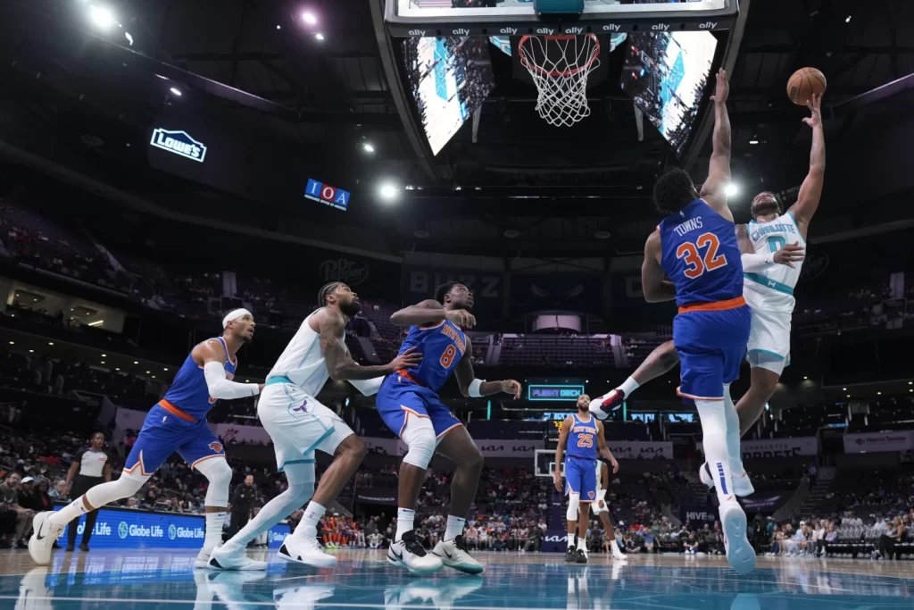 CHARLOTTE, N.C. (AP) — Jalen Brunson thought twice about going 1-on-2 in transition, instead dribbled back outside and flipped the ball behind him to Karl-Anthony Towns, who made a 3-pointer with a defender in his face.