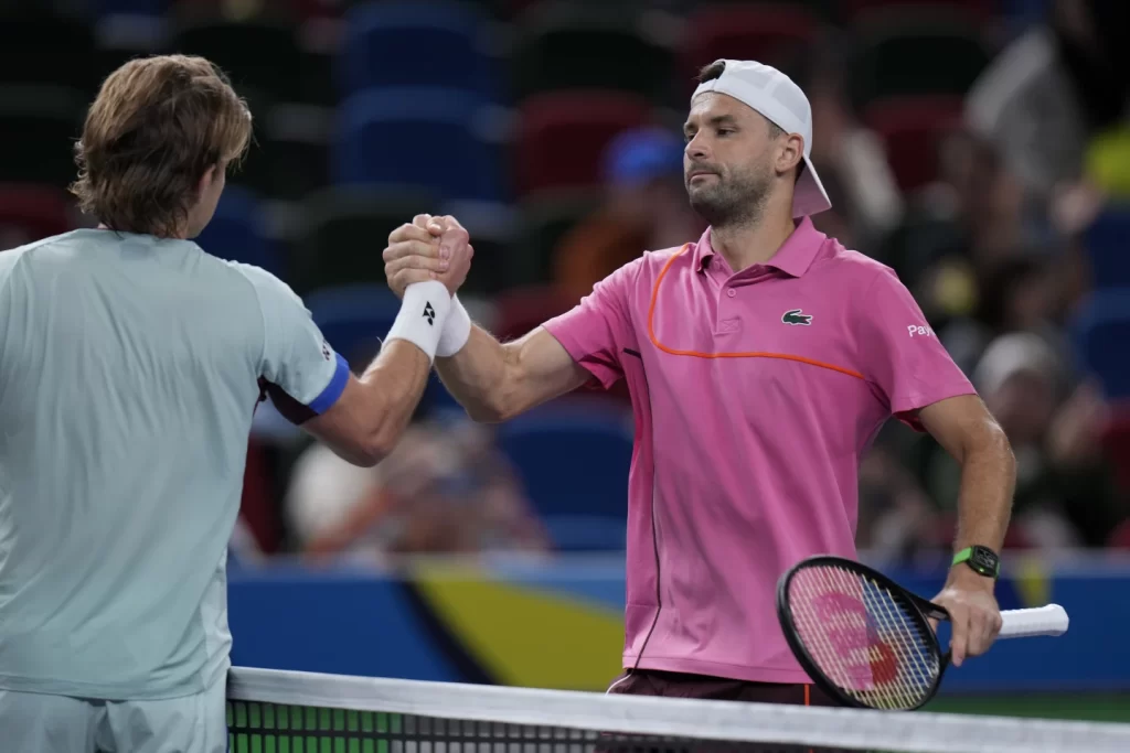 SHANGHAI (AP) — Two days after starting, seventh-ranked Taylor Fritz and 10th-ranked Grigor Dimitrov finally got to complete their second-round matches at the Shanghai Masters on Monday.