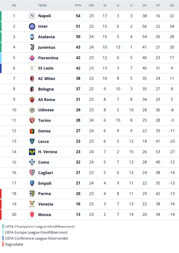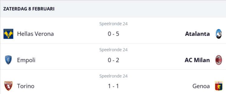 Eerder op de dag was Retegui de grote man bij Atalanta. De Argentijnse spits scoorde liefst vier keer in de 0-5 overwinning op Hellas Verona. Atalanta stond bij rust al op een comfortabele 0-4 voorsprong en verstevigde met deze zege de derde plaats in de Serie A.