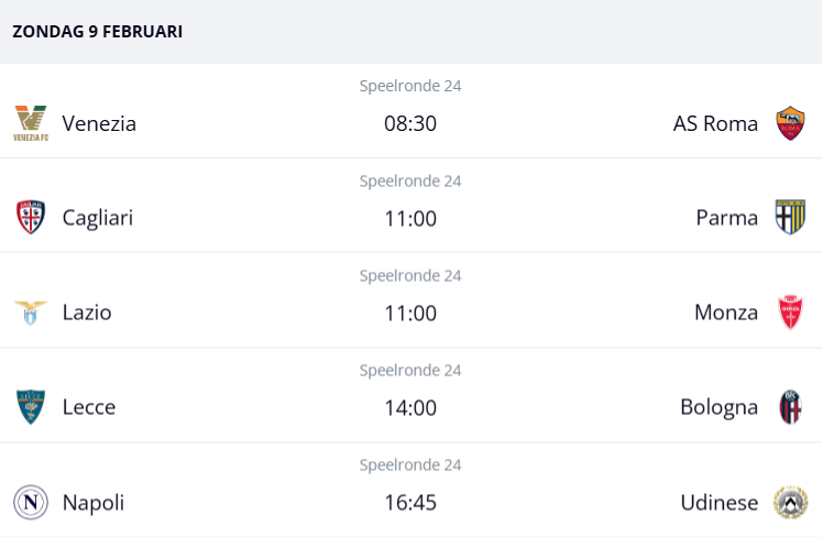 Wedstrijdschema zondag 9 februari: