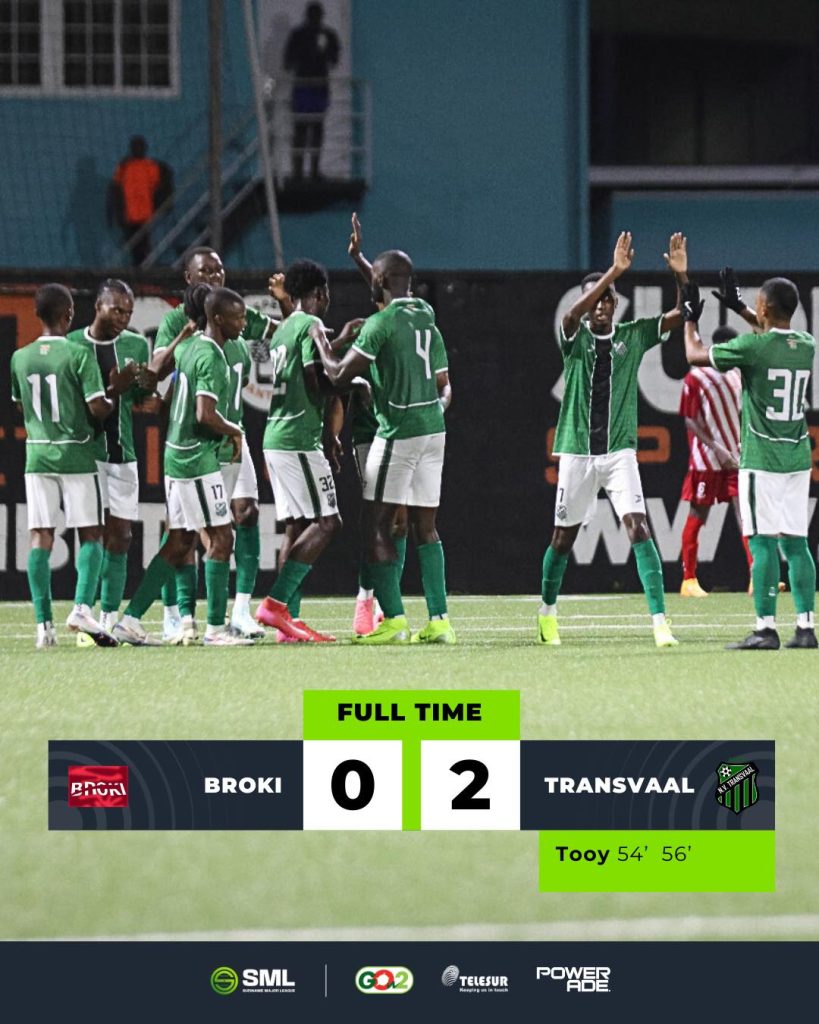 In de tweede wedstrijd van de avond boekte Transvaal een solide 2-0 overwinning op Broki. De treffers kwamen van Lalanie Tooy, die in de 54e en 56e minuut scoorde en daarmee het verschil maakte voor zijn ploeg.