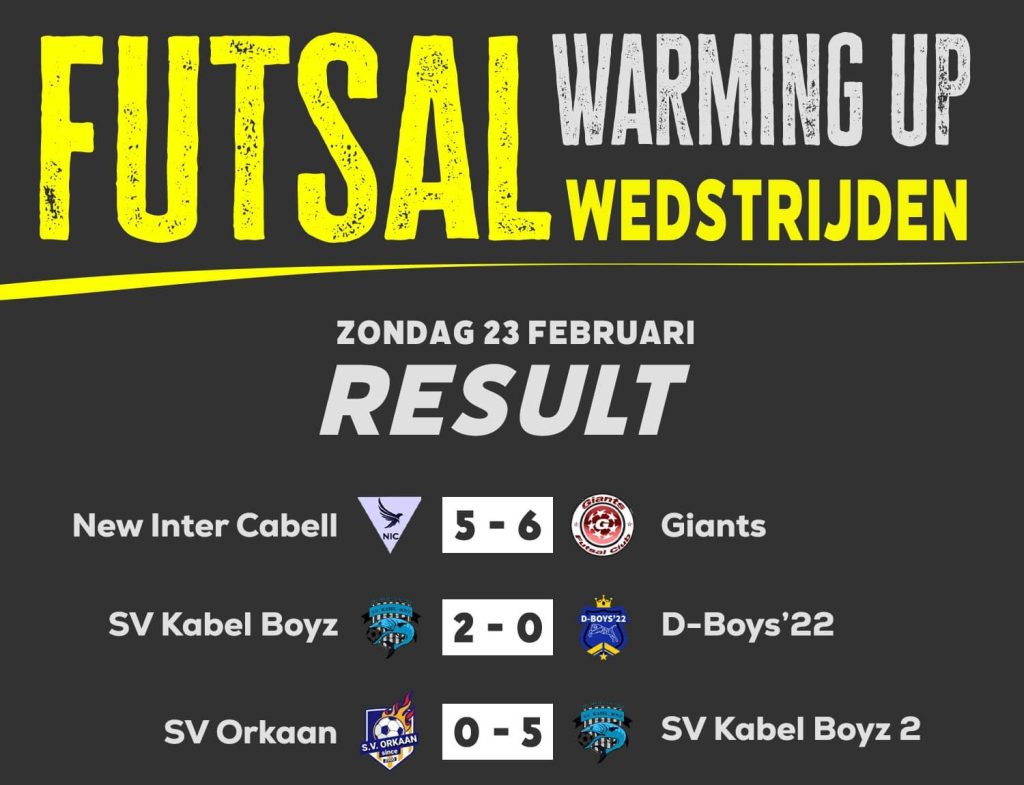 De Surinaamse Zaalvoetbalbond (SZVB) heeft vandaag warming-up wedstrijden georganiseerd ter voorbereiding op het nieuwe zaalvoetbalseizoen, dat op 27 februari van start gaat. Deze oefenwedstrijden gaven teams de kans om hun vormen te testen en zich voor te bereiden op de competitie.