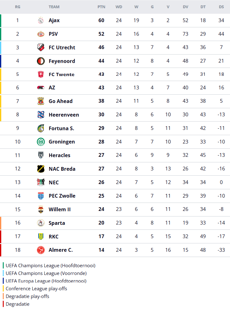 De overwinning was alweer de negende op rij voor Ajax in de Eredivisie, waardoor de club nu in een uitstekende positie staat om de landstitel te winnen. Ajax heeft nu een comfortabele voorsprong van acht punten op PSV, dat een dag eerder verloor. De Amsterdammers zijn bezig aan een sterk seizoen, na vorig jaar slechts vijfde te eindigen.