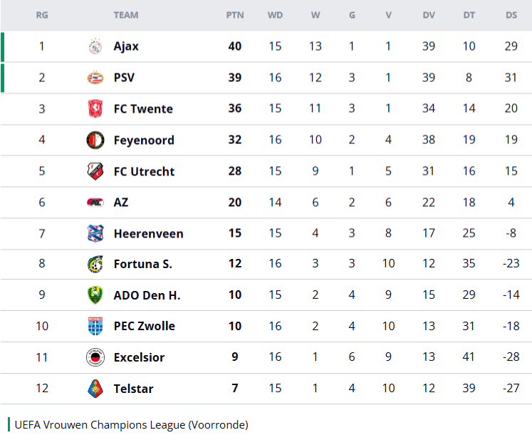 Door deze overwinning sluit PSV weer aan bij Ajax, de koploper in de Eredivisie. De achterstand op de Amsterdammers bedraagt slechts één punt, al heeft Ajax wel een wedstrijd minder gespeeld. Het belooft een spannende strijd te worden in de komende weken!