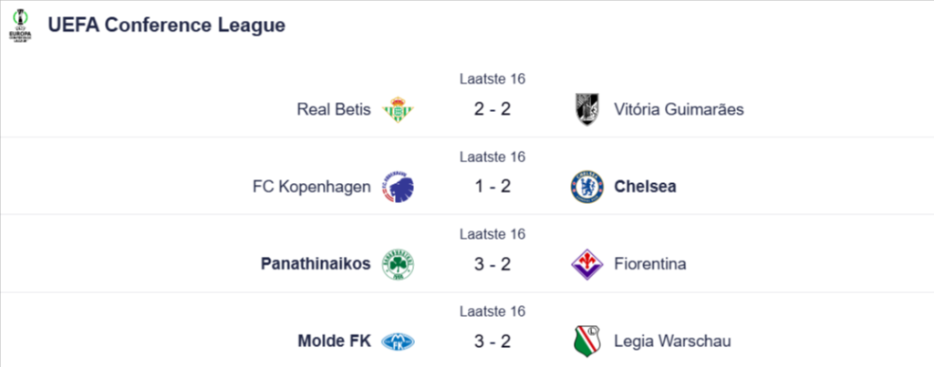 Uitslagen van de algespeelde wedstrijden voor vandaag: