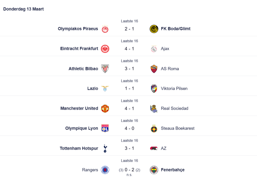 Met deze resultaten krijgt de kwartfinale van de Europa League een verrassende samenstelling, waarin enkele outsiders de kans krijgen zich te bewijzen op het hoogste niveau.