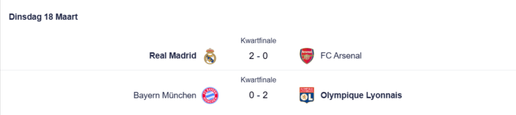 🔹 Arsenal begon sterk en zette Madrid onder druk, maar de thuisploeg sloeg toe bij hun eerste echte kans in de 22e minuut.