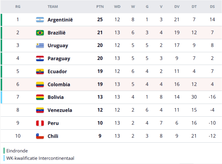 🎟 De zes beste teams plaatsen zich direct voor het WK 2026.