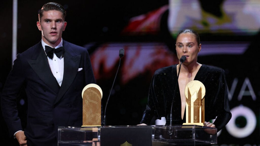 De beste coaches van het jaar waren Luis Enrique (PSG) en Sarina Wiegman (Engeland). Wiegman, die de Leeuwinnen naar een tweede opeenvolgende EK-titel leidde, greep het podium om een krachtige boodschap te delen: