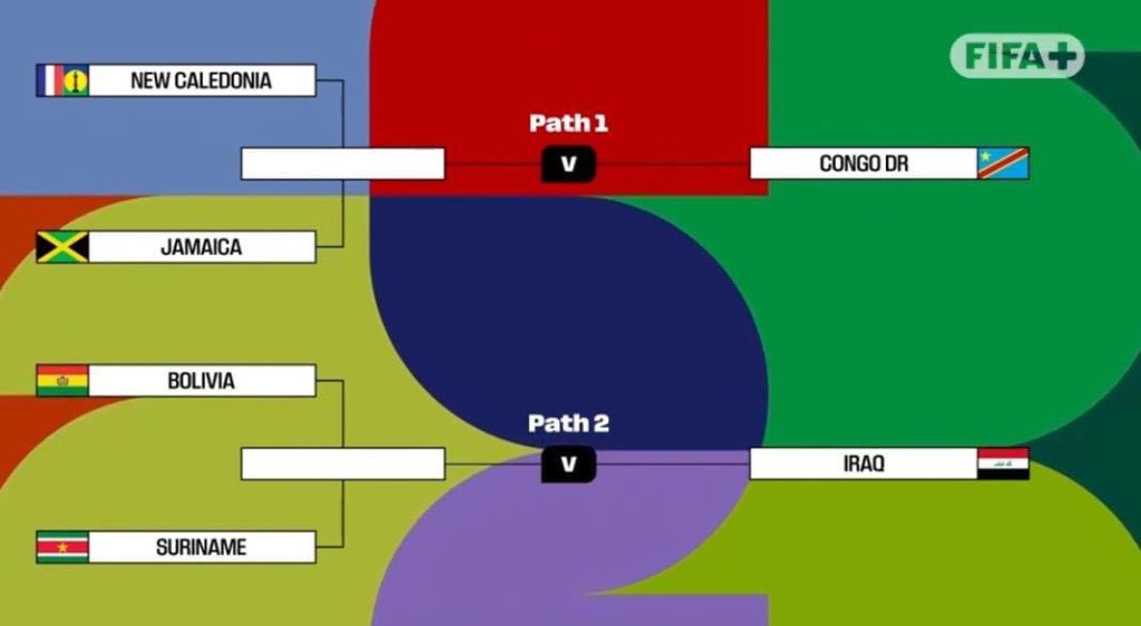 De winnaar van het duel tussen Suriname en Bolivia plaatst zich voor de beslissende play-offfinale. Daar wacht Irak, dat eerder werd ingedeeld in hetzelfde traject. De winnaar van die wedstrijd pakt het laatste ticket voor het WK in de Verenigde Staten, Canada en Mexico. De finale wordt gespeeld op 31 maart in Mexico.