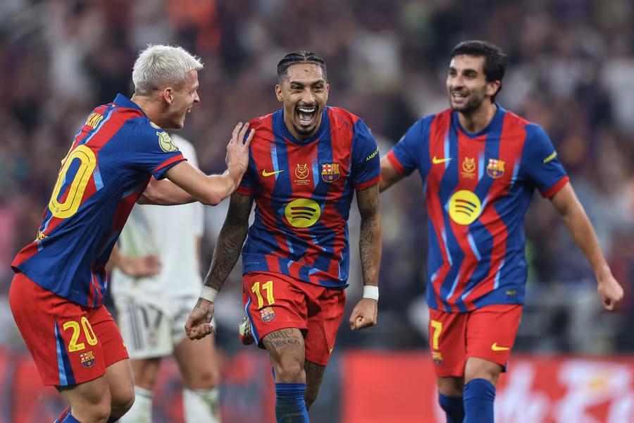 FC Barcelona heeft zondagavond in Saudi-Arabië opnieuw de Supercopa de España veroverd na een spectaculaire 3-2 overwinning op aartsrivaal Real Madrid. In een enerverende Clásico in Jeddah was Raphinha de grote man met twee doelpunten, terwijl ook Robert Lewandowski zijn naam op het scorebord zette.