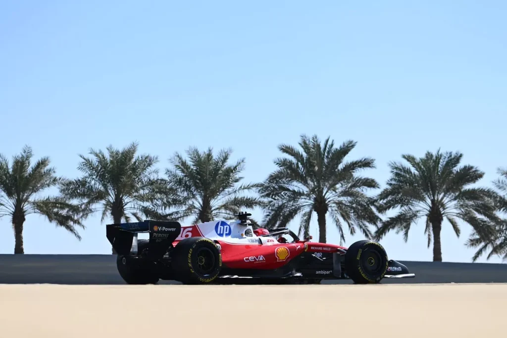 De pitstraat op het Bahrain International Circuit ging om 08.00 uur Nederlandse tijd open en veel teams verschenen meteen met grote aero rakes op de baan. Charles Leclerc trok al vroeg de aandacht door in de Ferrari een 1.33.739 te rijden op de prototype C3-band van Pirelli — goed voor de snelste ochtendtijd.
